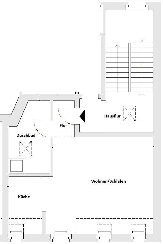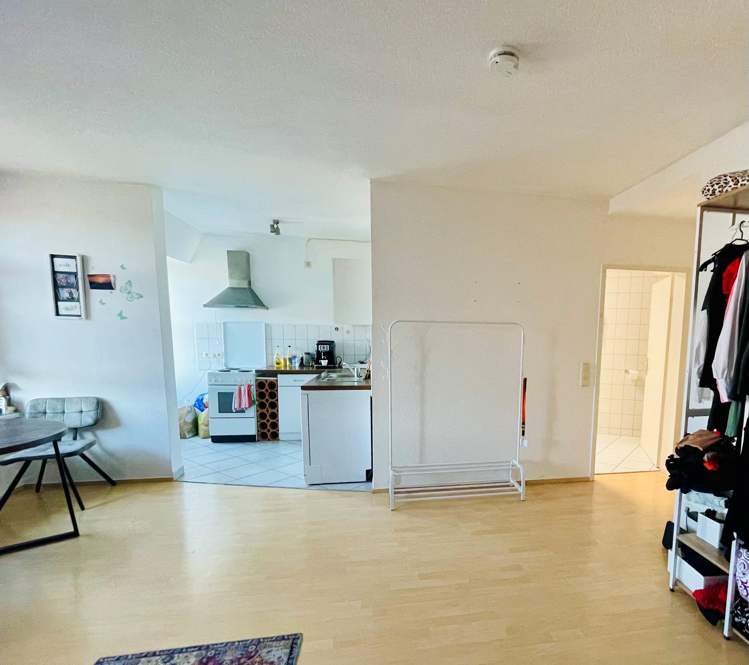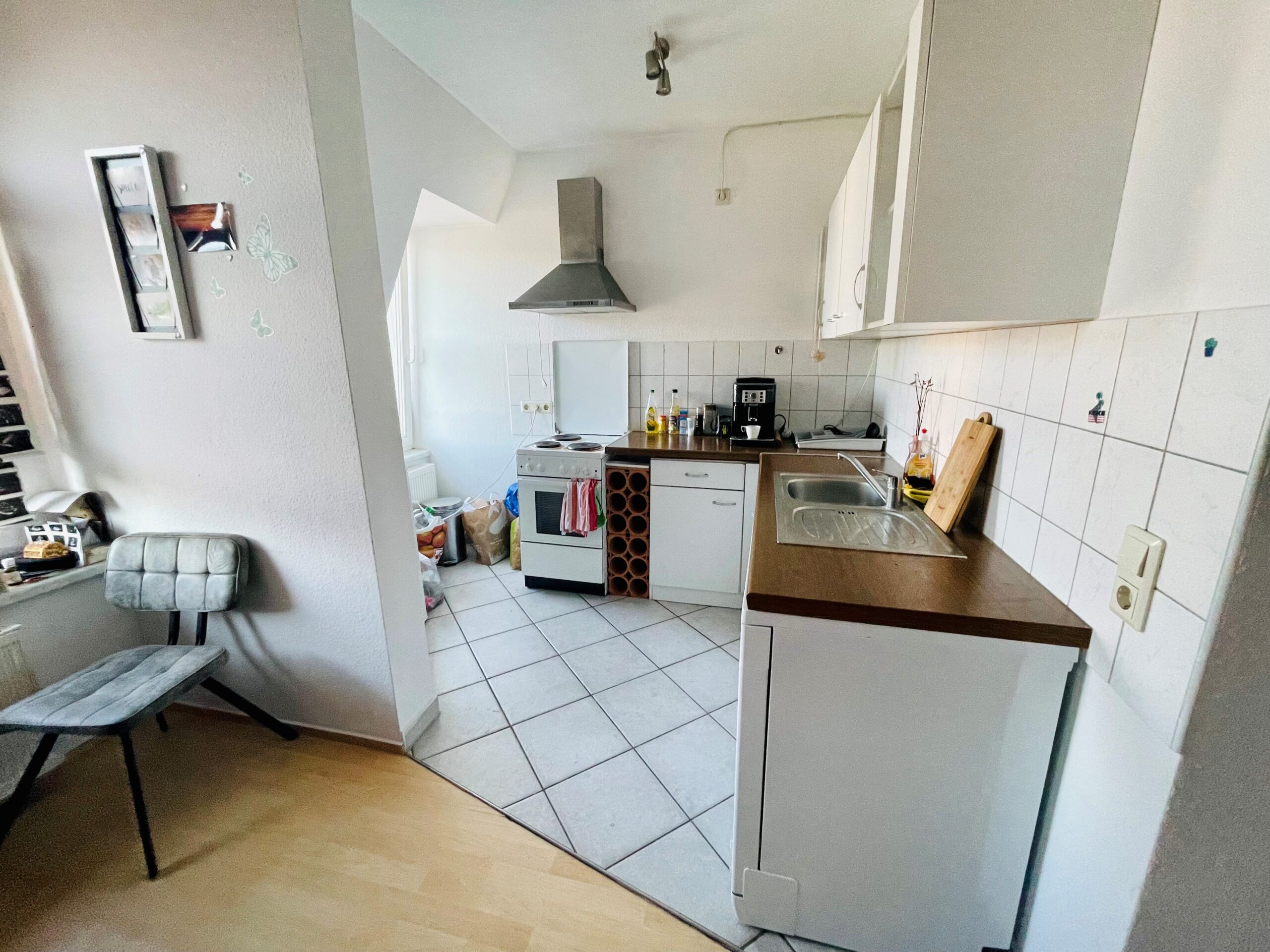 Die helle und freundlich geschnittene Dachgeschosswohnung befindet sich in einem gepflegten Mehrfamilienhaus und überzeugt durch eine angenehme Wohnatmosphäre. Über den zentral gelegenen Flur sind sowohl das Badezimmer als auch der Wohn-/Schlafbereich mit integriertem offenen Küchenbereich bequem erreichbar. Das Badezimmer ist modern ausgestattet und verfügt über eine Dusche sowie ein praktisches Oberlicht, das für natürliches Tageslicht sorgt. Der großzügige Wohn- und Schlafbereich mit angrenzender Küche bietet viel Platz für individuelle Gestaltungsmöglichkeiten und schafft ein offenes, einladendes Wohngefühl. Durch die Fenster genießen Sie einen herrlichen Ausblick über die Dächer der Stadt – ein besonderes Highlight der Wohnung. Die durchdachte Raumaufteilung und die helle Dachgeschosslage machen diese Wohnung zu einem attraktiven Zuhause für alle, die zentrales und zugleich ruhiges Wohnen schätzen.